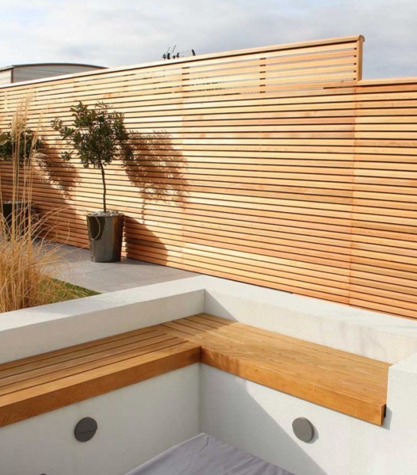 Minimalistic gardens tend to look bigger. The lines used in the modern fence panels create length which might not really be there.